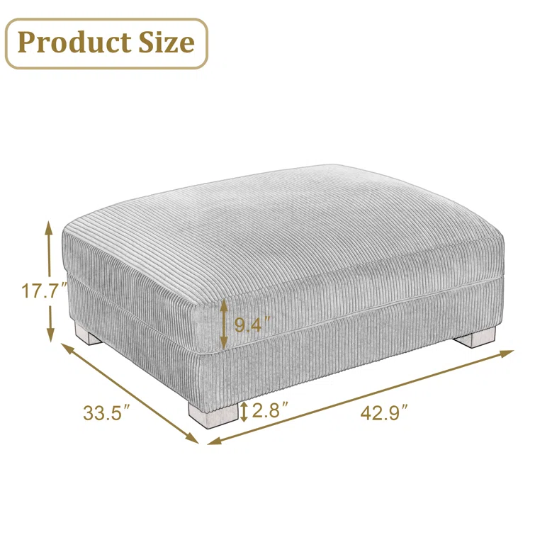 Put the finishing touches on your living room or bedroom ensemble with this upholstered ottoman. A solid and engineered wood frame rests on four low-profile block feet, and it’s wrapped in corduroy for added texture. It comes in a solid hue of your choice to suit your desired aesthetic and color scheme. The cushion is foam-filled, while pocket springs add even more support as you kick up your feet or as your pet enjoys some relaxation time when you’re not around.